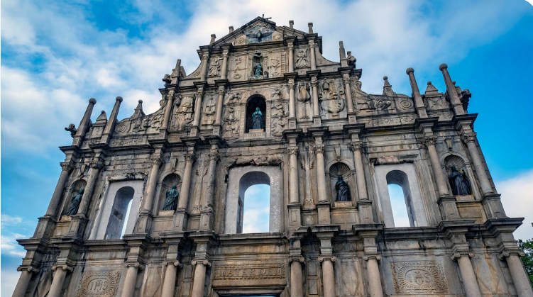 大三巴牌坊的建筑风格特色是东西方文化交融和谐共处的历史见证,左侧是著名的澳门博物馆,收藏了大量的历史文物和艺术品,是了解澳门历史和文化的重要场所。